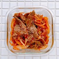 5) 粗熱をとってから保存容器に入れ、ゴマをかけて、冷蔵庫で良く冷やしていただきます。