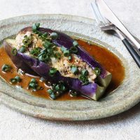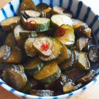 今日は、さっぱりとした甘酢に浸けた「なすの南蛮漬け」です。蒸し暑い時でも、良く冷やした南蛮漬けはおいしくいただけますよ。また、なすを揚げる油は大さじ2だけにしたので、どちらかと言うと、揚げるというより揚げ焼き。