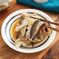 1) 鍋にごま油をひき、にんにくおろし・しょうがおろし、豚ばら肉を入れて炒める。