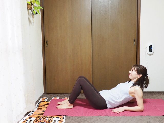 ここからは、薄い下腹を作る「ひざ曲げ腹筋」をしていきます。