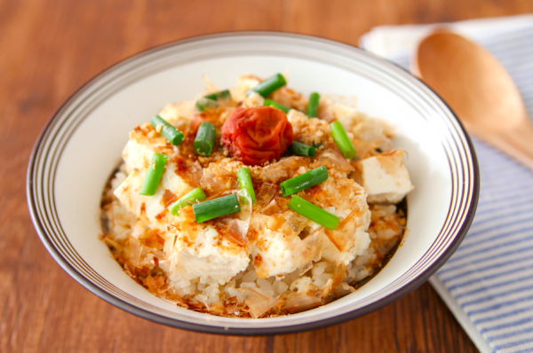 火も包丁も使わない、さっぱりとした味わいが楽しめる「ぶっかけ豆腐丼」です。