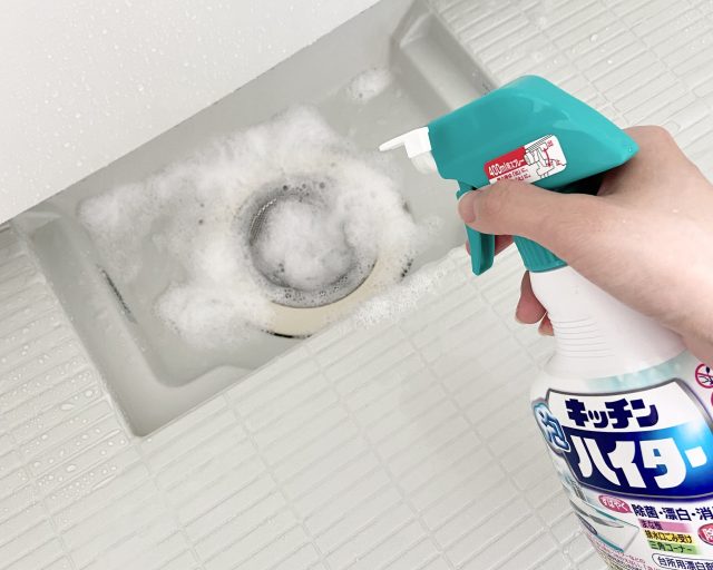 排水口に泡ハイターをかけて5分後に洗い流すと、ニオイやぬめりがスッキリするそう。