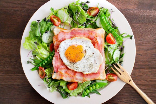 トーストの上に目玉焼きとベーコンを乗せ、サラダをサイドに添えれば、忙しい朝でも手軽においしい朝ごはんが完成!