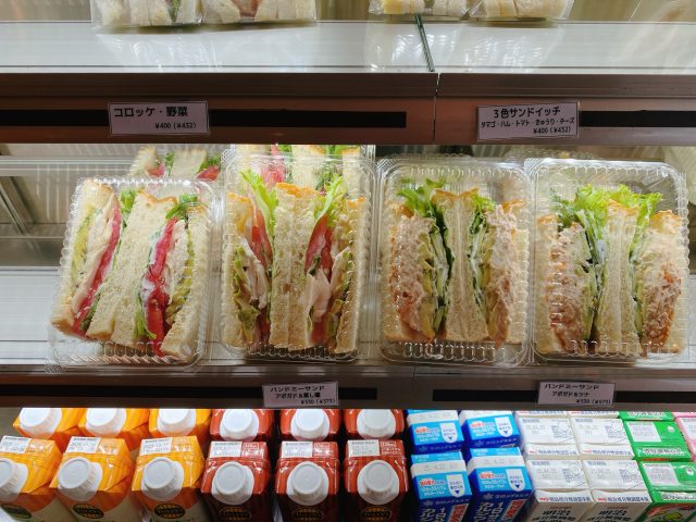 左上のアボガドと蒸し鶏のパンドミーサンドをパクリ。