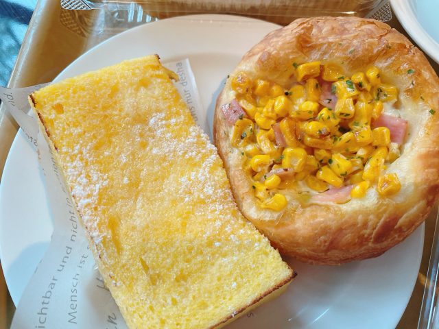 こぼれ落ちそうなくらいコーンが乗ったマヨコーンハムデニッシュもおいしかったなぁ。アップルパイは隅々までリンゴがぎっしり。パイのサクサク加減が絶妙。クロックムッシュは温めて食べたらチーズたっぷりとろっとろでした。
