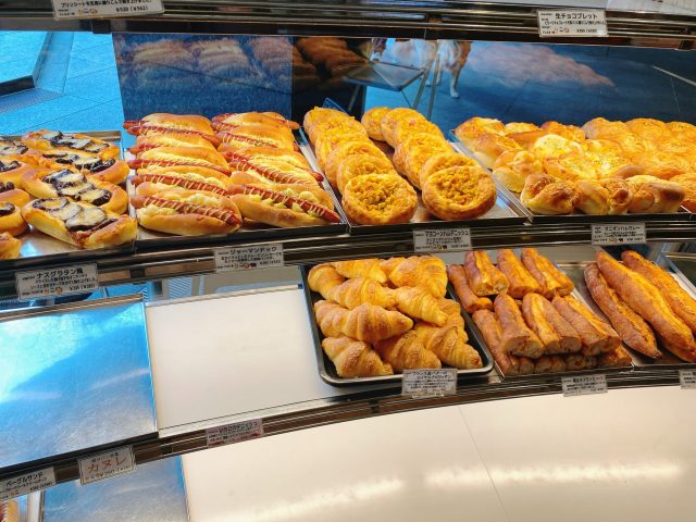 フランスパンに始まり、お惣菜パン、デニッシュ、サンドイッチ、スイーツに至るまで種類豊富。お客さんも続々とやってきます。