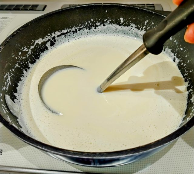 ※バーミキサーがない場合は、【3】と牛乳をミキサーに入れなめらかになったら鍋に戻す。