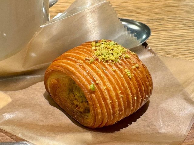 サクッとしたデニッシュ生地に、ピスタチオクリームがたっぷり詰まっています。