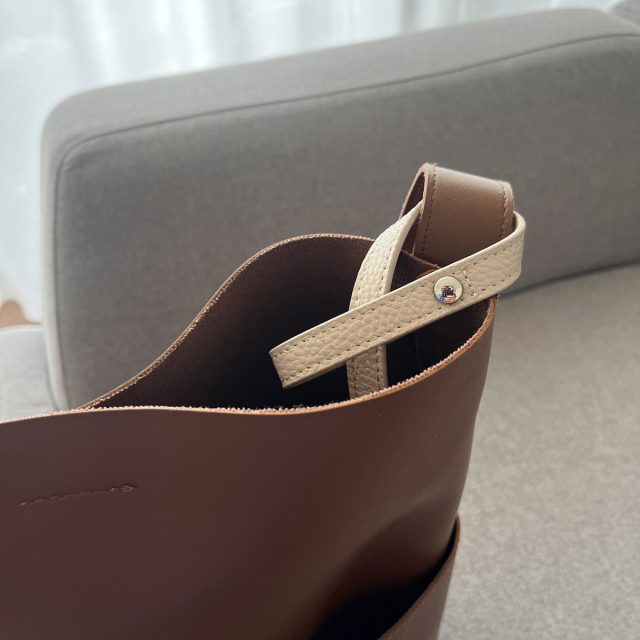 シボ感のある牛皮ストラップが、バッグのワンポイントに