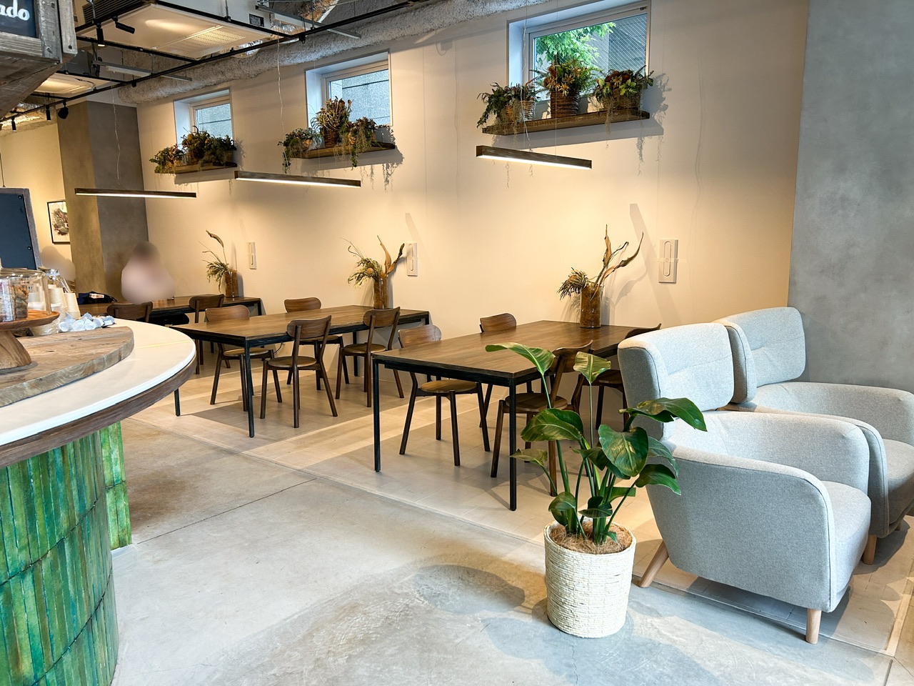 お店の奥にはテーブル席があります。天井が高く、開放感がありました。