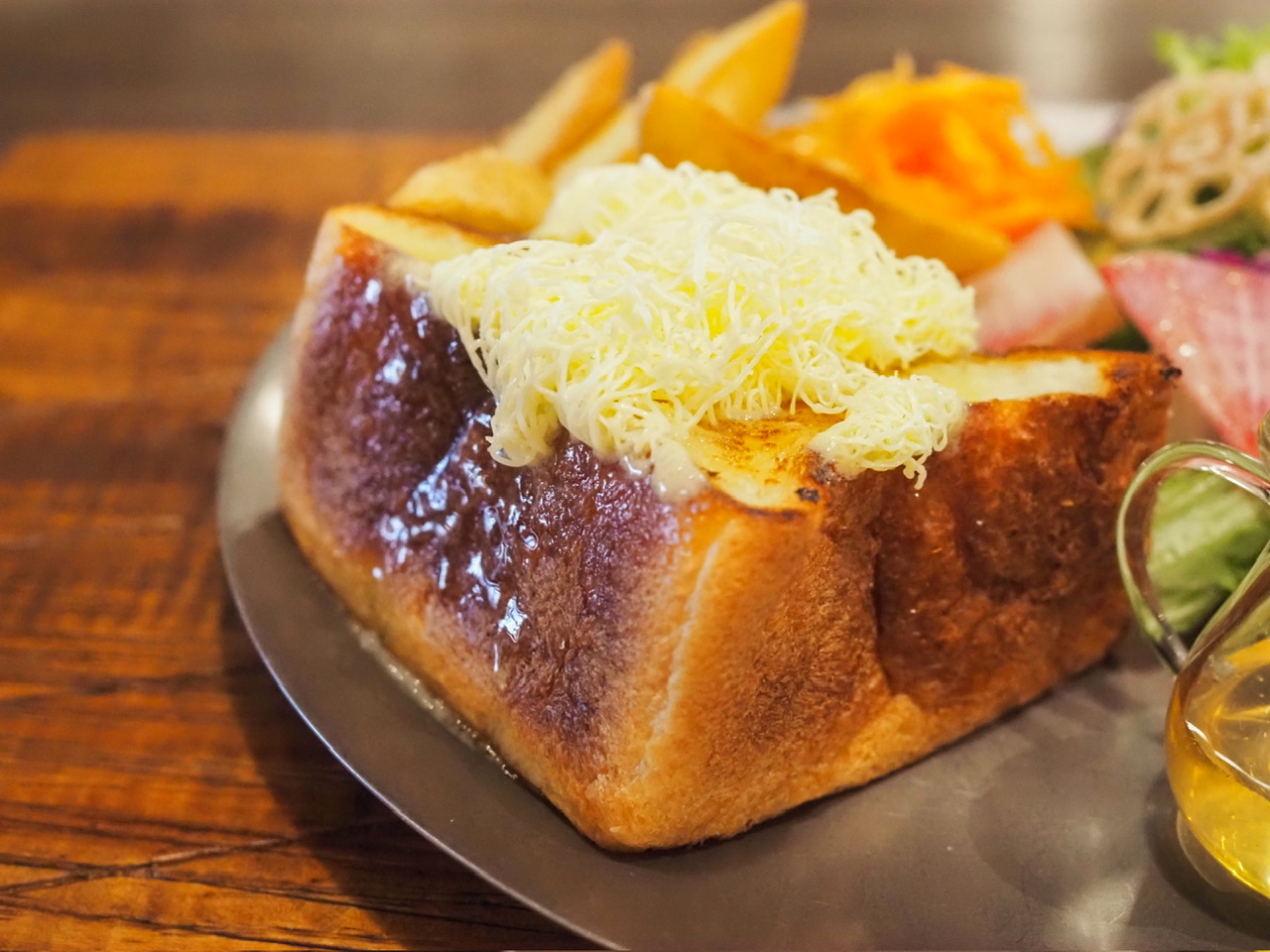 生地にバターが練り込まれている上に、さらにバターをかけていただくという追いバター方式。美味しくないわけがありません。バターの香り、コクがガツンと感じられる極上のトースト。そこにはちみつの甘みも加わり、ご馳走のようなハーモニーが味わえます。