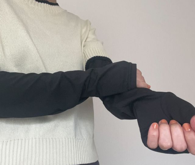 長さもしっかりあるので、ノースリーブを着た時も二の腕までしっかりカバー。指も第二関節まではカバーできるので安心です。