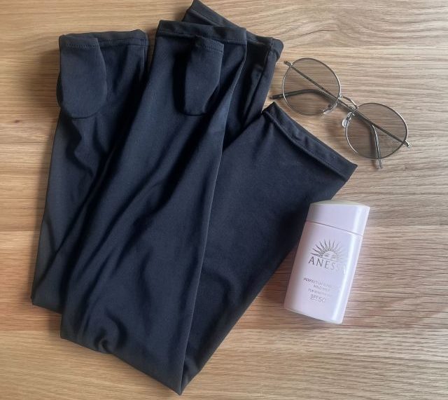 また、ちょっとコンビニまで…のような短い時間外に出る時は、日焼け止めを塗るのが面倒でこれだけで済ませることも。一方で、アウトドアの時など紫外線強めな状況では、日焼け止めを塗った上に、アームカバーをしてしっかり紫外線を防ぐこともしています。