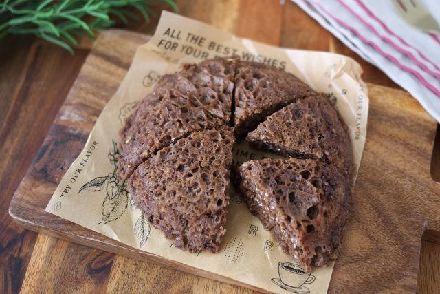 【1】レンジだけでお手軽!低糖質なオートミールココア蒸しパン。