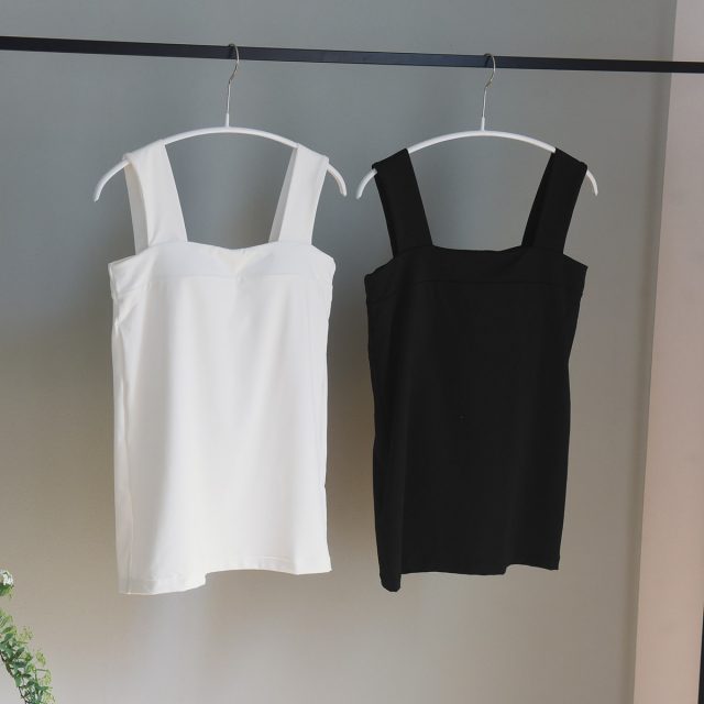 胸元ピタッ!脇下ピタッ!の隙なしデザインで、胸チラやブラチラを防ぐスクエアタンクトップ。