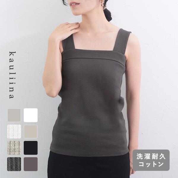 【滑らかコットン素材】チラ見えを防ぐ スクエア タンクトップ/kauliina(アンジェ楽天店)