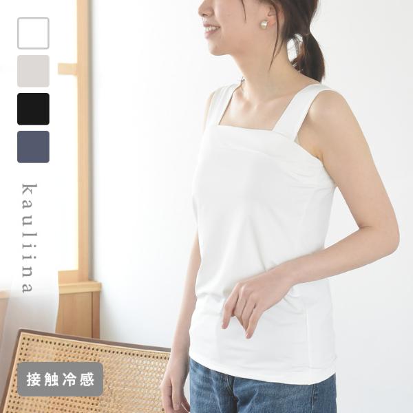 【さらさらナイロン素材】ひんやりクールタッチ チラ見えを防ぐ スクエア タンクトップ 接触冷感 吸水速乾/kauliina(アンジェ楽天店)