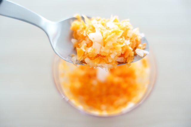 20回程度引っ張るとかなり細かいみじん切りになるので、離乳食や、野菜が苦手なお子さん向けにも便利だと思います。