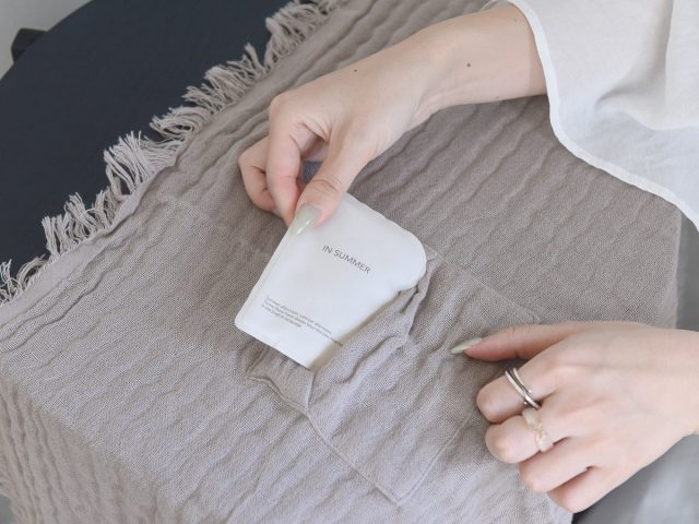 保冷剤をタオルやハンカチで包んで首に巻いたことのある方も多いかと思いますが、このストールなら保冷剤をポケットにセットするだけで首の後ろがヒンヤリ。保冷剤がズレ落ちたり、タオルのように毎回包む手間もいりません。