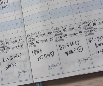 私は「昨日は他人にイライラしてしまった…そのぶん今日は、ありがとうを多く言おう!」のように、軌道修正のように使うこともあります。時間がない朝でも1行だけなら書けますし、言葉にすることで気持ちが整うのを実感しています。