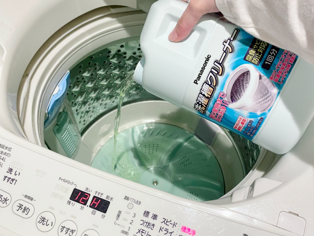 月に一度を目安に、洗濯槽クリーナーでお手入れを。「何年もお手入れしていない…」という人は、家電メーカーが出している洗濯槽クリーナーを使うのもひとつの手。少し値は張りますが、洗浄力は抜群です。
