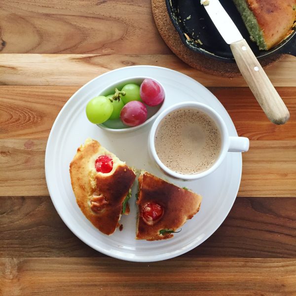野菜もタンパク質も摂れる!「スキレットホットケーキ」