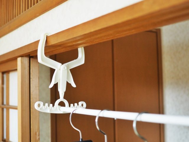 最後が「賃貸でもOKな室内干しハンガー」。鴨居に引っかけて洗濯物干しスペースを作れる室内干しハンガーです。