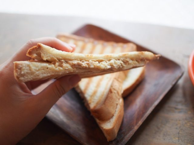 ホットサンドの表面はカリッと。焼きたて熱々で、具材がたっぷりと詰まっています。ツナと細かく刻んだオニオンの香ばしさがたまらなかったと言います。