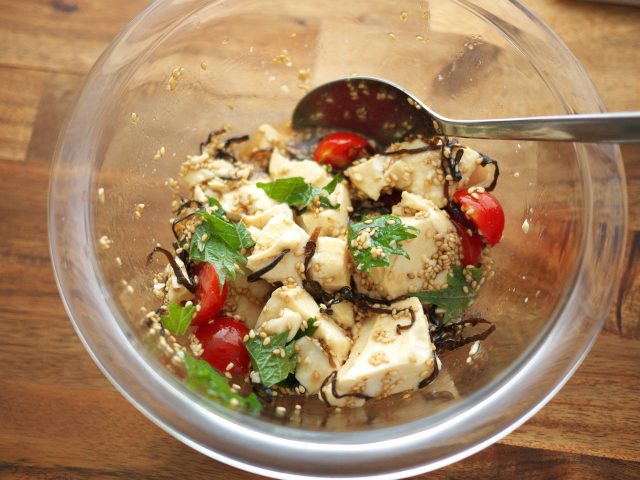 食欲がない朝にも!和えるだけ美肌食「さっぱり豆腐サラダごはん」