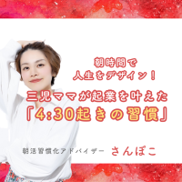 朝活習慣化アドバイザーのさんぽこ(北野三保子)(@3poco_morningram)です。6歳・5歳・0歳の三児を育てながら、毎朝4:30起きでフリーランスとして働いています。