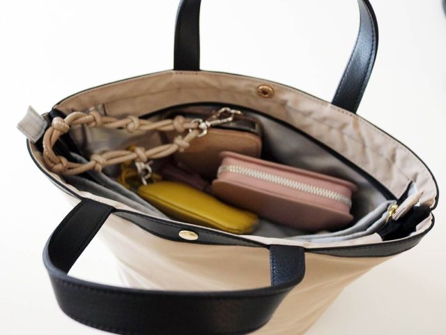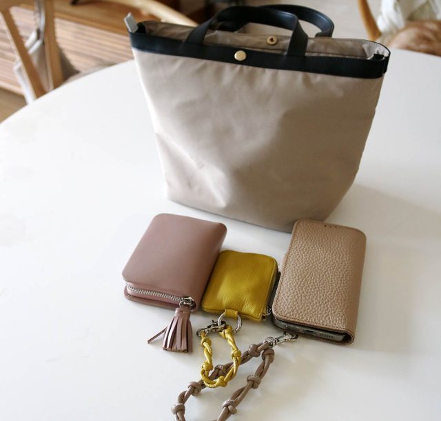 お出かけに絶対に必要な「財布、鍵、スマホ」。+ミニポーチ、ハンカチ程度なら、インナーポーチとバッグの隙間におさまります。