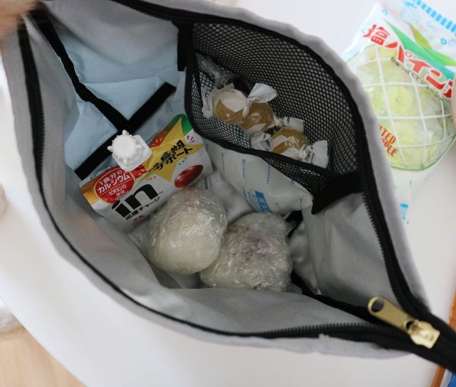 子どもの塾の軽食で、おにぎり+ゼリー飲料を持たせたい時。娘はすべての荷物をリュックに入れる派なので、少しクッション性のあるこちらの保冷ポーチはそんな時にも活躍。