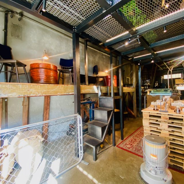 こちらは廃工場をリノベーションした焙煎工場を一部開放して、カフェとしてオープンしたお店です。お店には巨大な焙煎機があり、全国の「パンとエスプレッソと」で提供するコーヒーを焙煎しているのだとか。