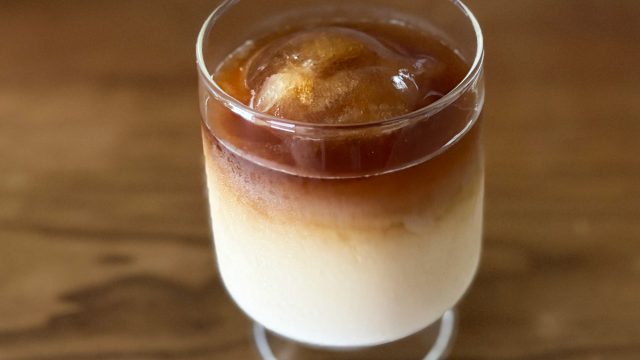 水出しコーヒーはもちろん、ミルクをあわせた「アイスオレ」にしてもおいしく楽しめます。写真のように、ミルクとコーヒーが2層になるよう注ぐと「映える」一杯になりますよ♪