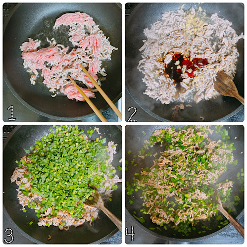 4) ニラに素早く火を通す。