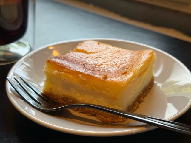 いただいたのはグリルドチーズサンドと、チーズケーキ、ブリューコーヒー。