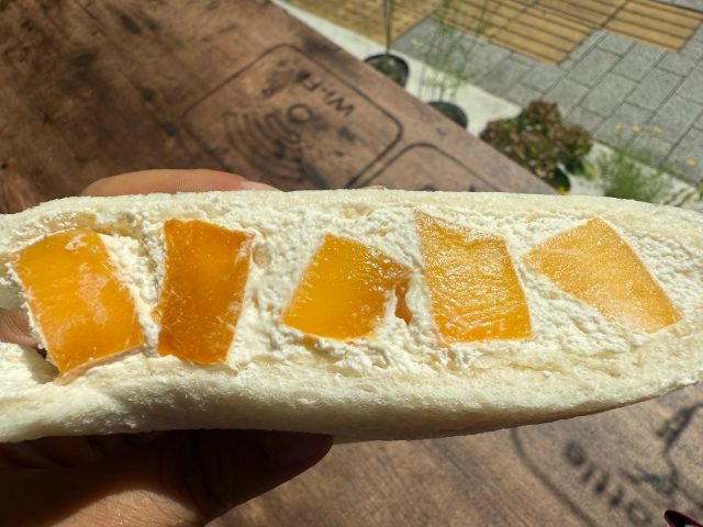 フルーツサンドには果物がぎっしり。丁度良い熟し具合のマンゴーでした。