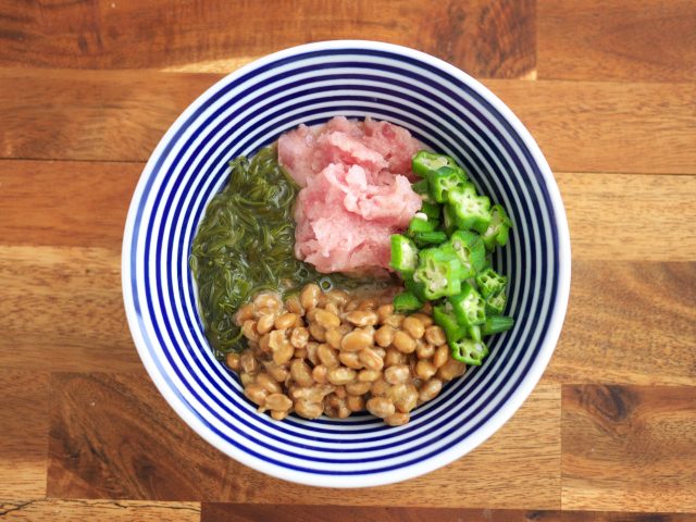 【1】ネバネバ食材大集合!食物繊維だけでなくたんぱく質も豊富なレシピ。