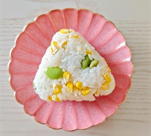 前の日の残りのゆで枝豆や、レンジ加熱したとうもろこしを混ぜてもおいしいおにぎりになります。