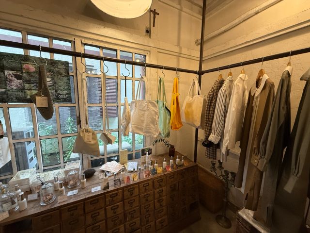 お店ではファッション、食器、お店の焼き立てのパン、香水などを1階で販売。2階にカフェがあります。1階のショップがほんと素敵なの。全部買いたい。