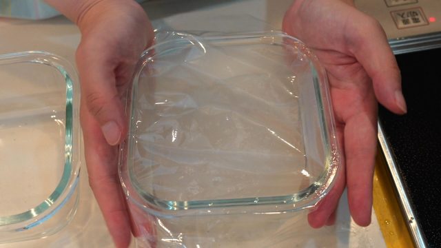 2) とろみがついてスライムぐらいの固さになったら器に流し、冷蔵庫で30分冷やす。