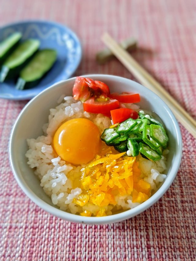 食物繊維が無いのなら、足してしまえば、これだけで栄養満点の朝ごはんになります。夏野菜を細かく切って混ぜるだけで、絶品の卵かけごはんができあがりますよ。