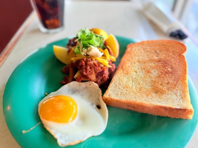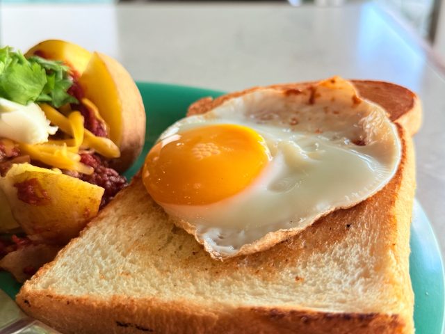 目玉焼きのトロトロの黄身がトーストに絡んで、これまた別料理に進化!シンガポールのカヤトーストのようにトーストと黄身が混ざり合います。