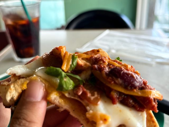 さらにさらにさらにー、チリビーンズも乗せちゃう。