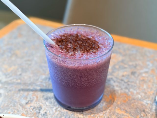 さらにいただいたブルーベリーエスプレッソシェイク。これは、これまで飲んだことのない味わい。酸味が効いているのかなと思っていたら、エスプレッソの重厚感も相まってチョコレートシェイクを爽やかにした感じ。これはぜひ飲んでいただきたいです。