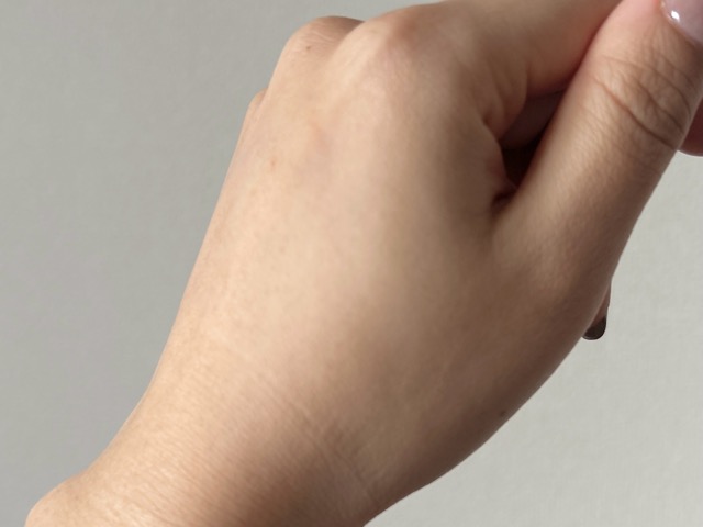 ごく少量を指に取り、毛穴や凹凸が気になる部分にくるくるとなじませるだけ。ポイントは“つけすぎないこと”。米粒ほどの少量で十分です。