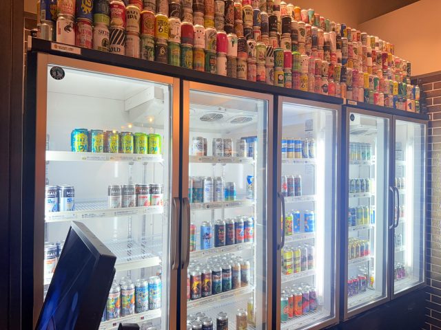 お店の前にはカウンター席やテーブル席があり、買ったらそこで食べることができます。カウンター席にはコンセントもあります。