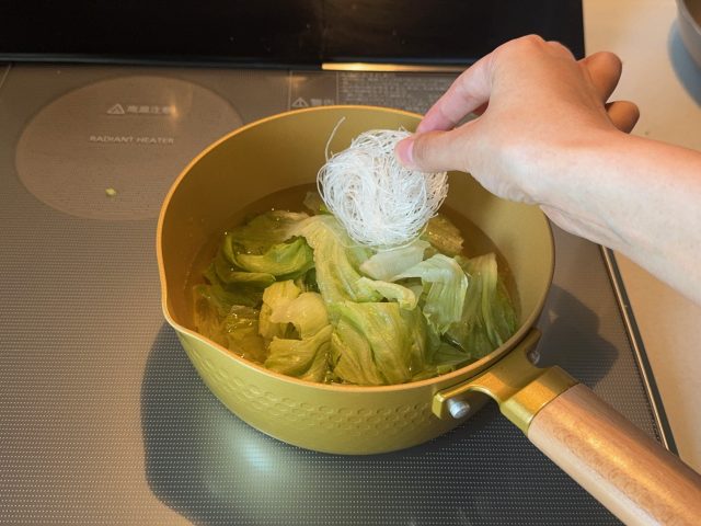 サッと作れる朝の一杯!「レタスと玉子の和風春雨スープ」