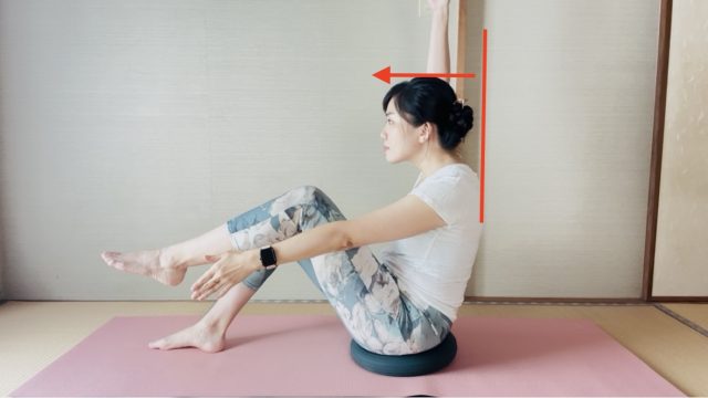 動きはシンプルですが、不安定なバランスディスクの上でやることでお腹の奥までしっかり効きます!