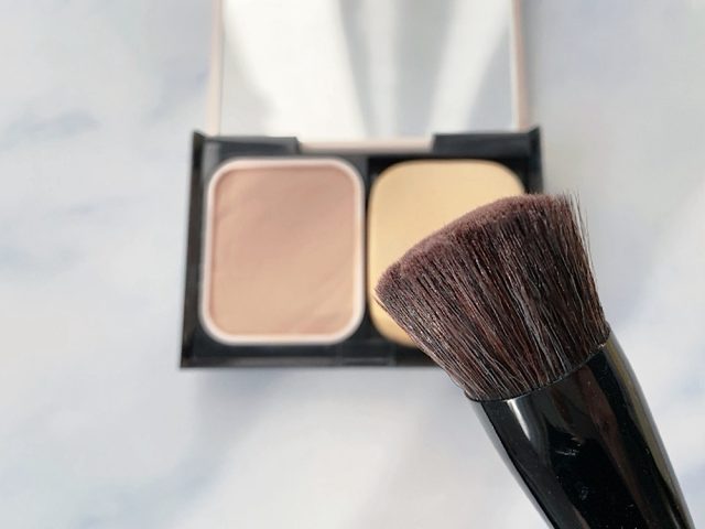 パウダーファンデを使いたい人は、大きめのブラシでふんわりのせるだけで粉っぽさを防げます。